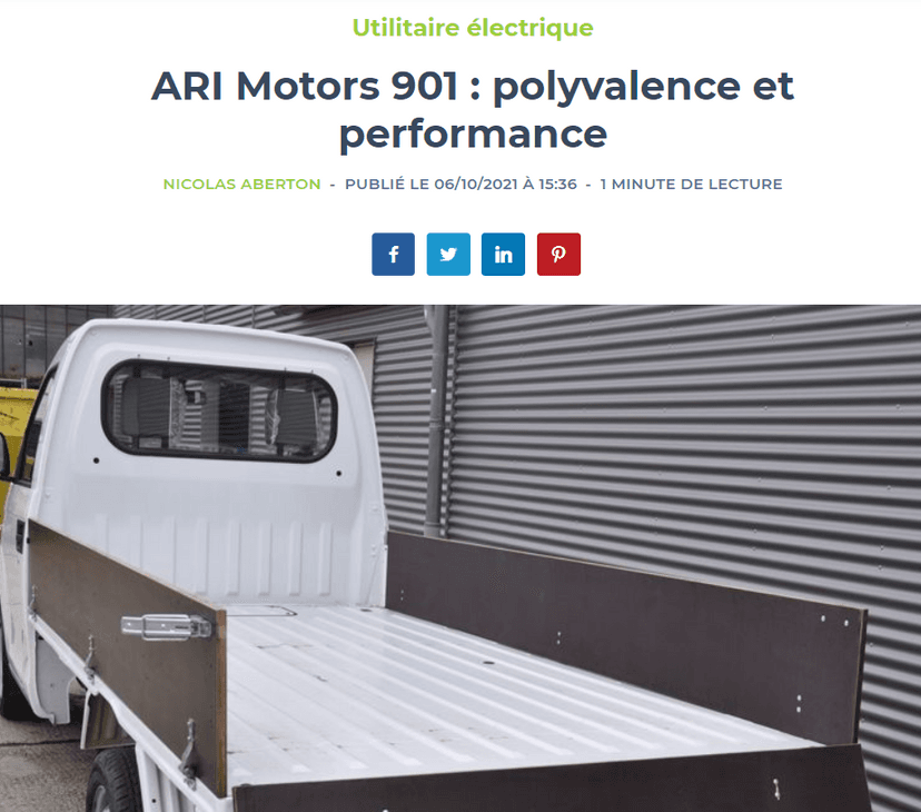 Das französische Portal für Landschaftspflege und Landwirtschaft, Materiel Paysage, stellt seinen Lesern den Elektrotransporter ARI 901 und dessen verschiedene Versionen vor. Dabei lobt es besonders die vielseitigen Einsatzmöglichkeiten und die starke Leistung des ARI 901. Mehr dazu hier.